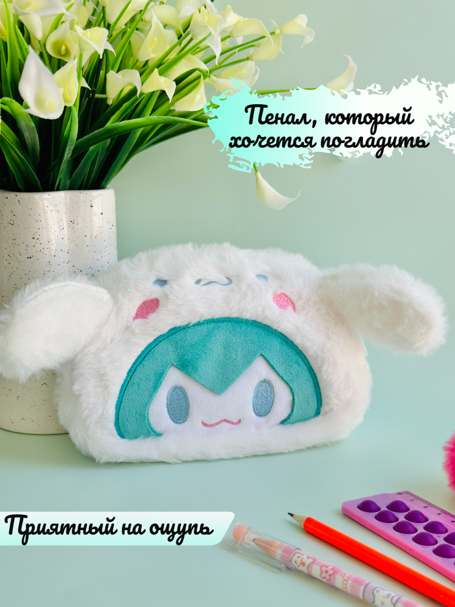 10 цен на Пенал пушистый "Синаморолл", на молнии, с ушками, для школьников, мягкий, 20x13см, белый/мятный