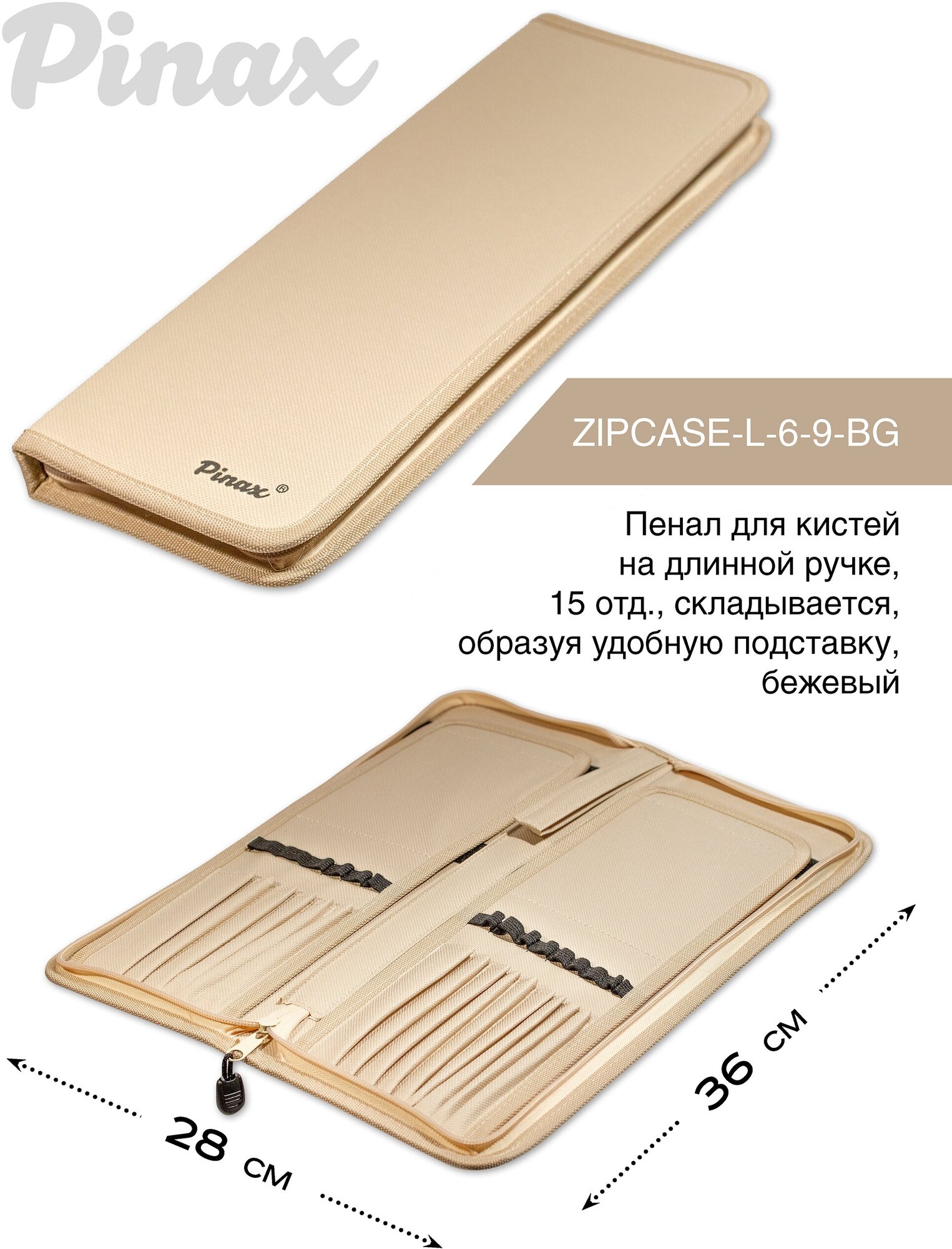 Пенал для кистей на длинной ручке, 15 отд, бежевый, ZIPCASE-L-6-9-BG информация: