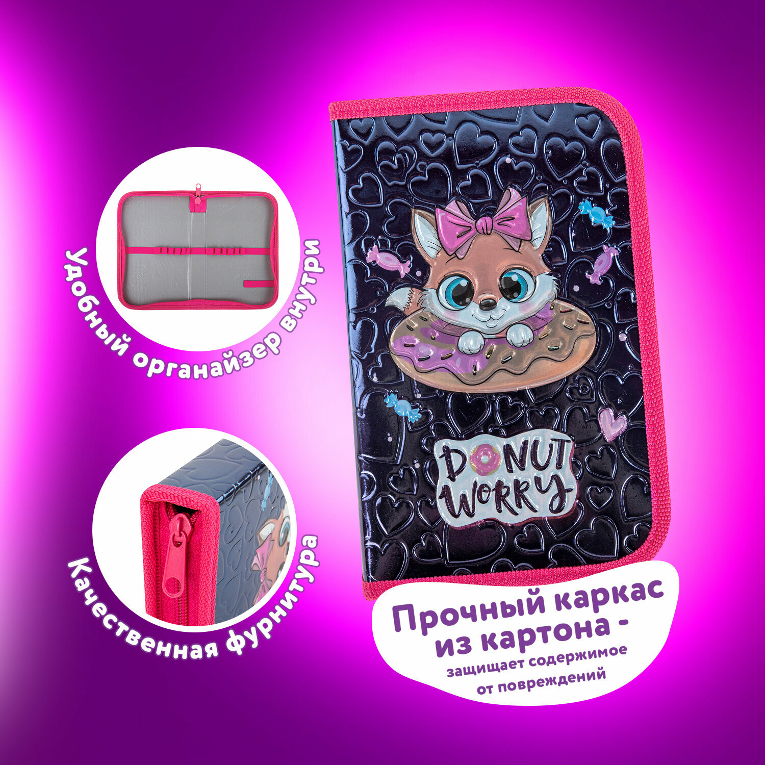 10 цен на Пенал Юнландия, 1 отделение, металлизированный картон, конгрев, 19х11 см, Donut worry, 272281