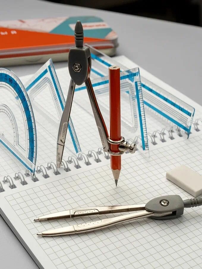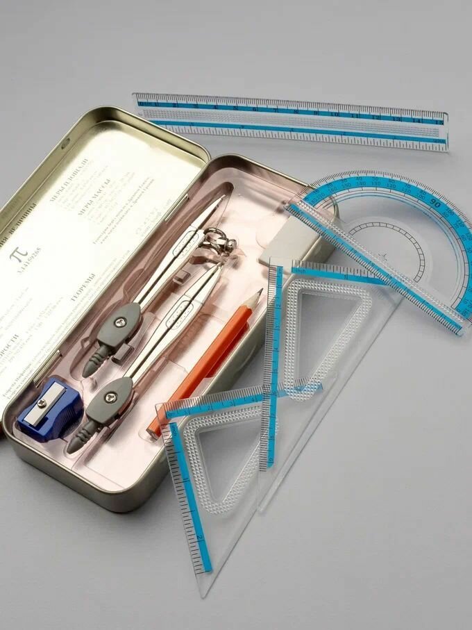 Циркуль готовальня с набором линеек. Набор школьных принадлежностей для черчения информация: