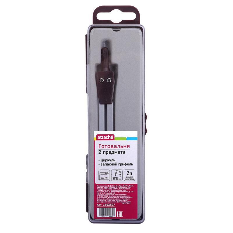 Готовальня Attache BF-A5 2пр/наб, циркуль 129 мм, серебр, пласт. пенал, европодв информация: