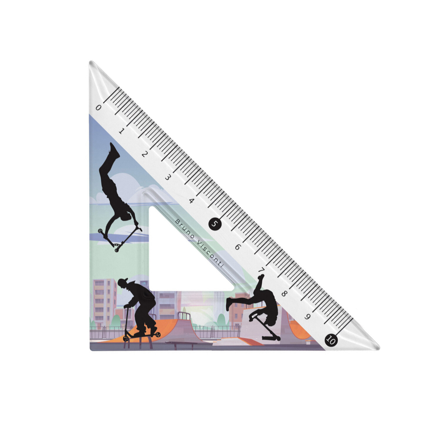 Треугольник пластиковый "HappyGraphix. Самокаты", 45 градусов, шкала по двум катетам информация: