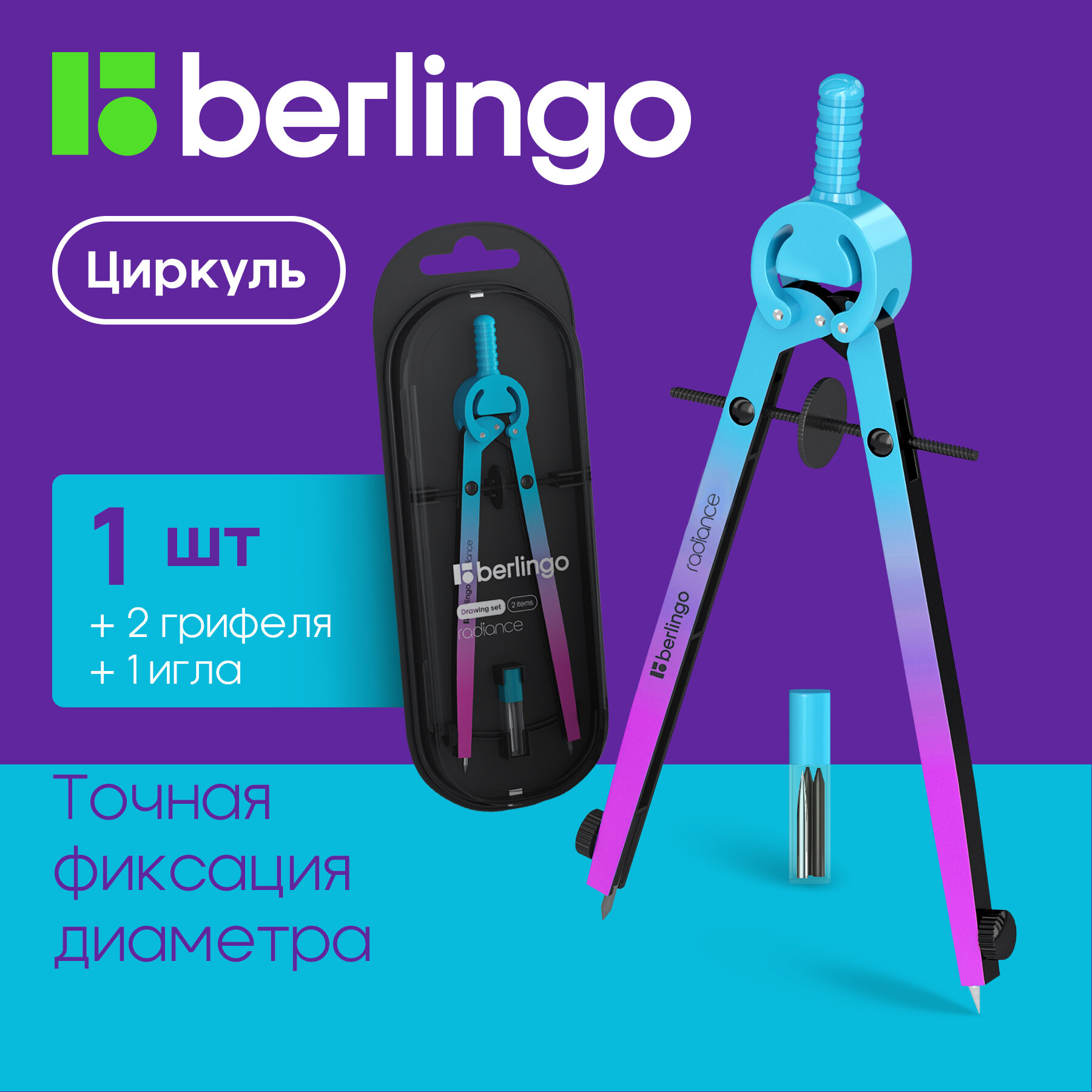 Отзывы на Готовальня Berlingo "Radiance", 2 предмета, циркуль 170мм, голубой/зеленый градиент, пластиковый футляр
