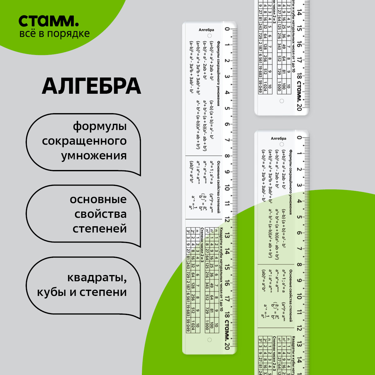 Линейка 20см СТАММ "Алгебра", со справочным материалом, пластиковая, прозрачная, бесцветная, 11 штук