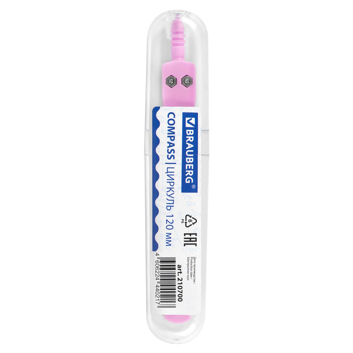Циркуль чертежный для школы 120 мм, защитный колпачок, пластиковый пенал, цвет пастельный розовый, Brauberg Geometry, 210700 информация: