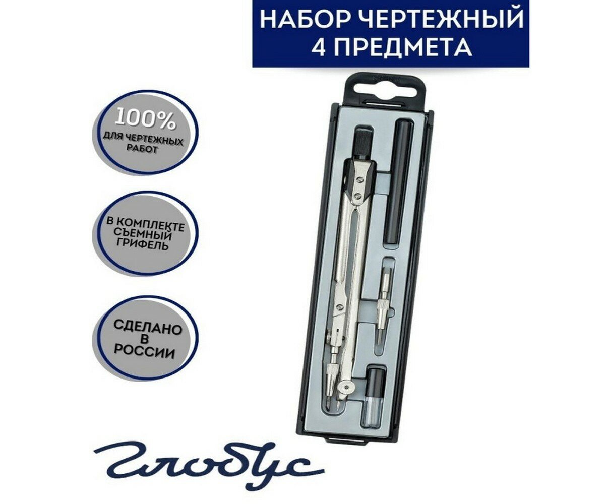 10 цен на Готовальня Глобус НЧ4-70-40 4пр/наб, циркуль 125мм, пласт. пенал, европодв