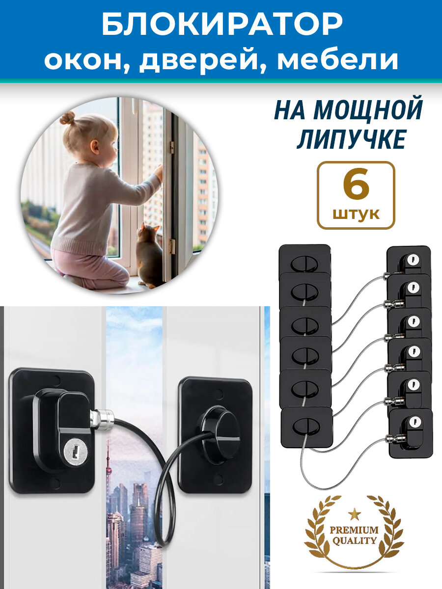 10 цен на Лот 6 шт: Ограничитель троссовый для окон, дверей, мебели без сверления, черный