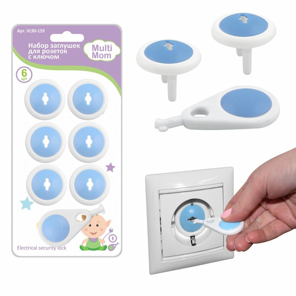 10 цен на Заглушки для розеток набор 6 штук с ключом, диаметр 3,5 см, пластик