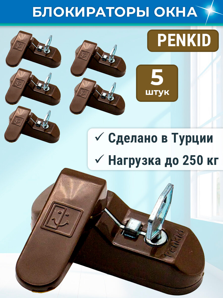 Лот 5 шт: Замок -блокиратор оконный Penkid Sash Lock, коричневый информация: