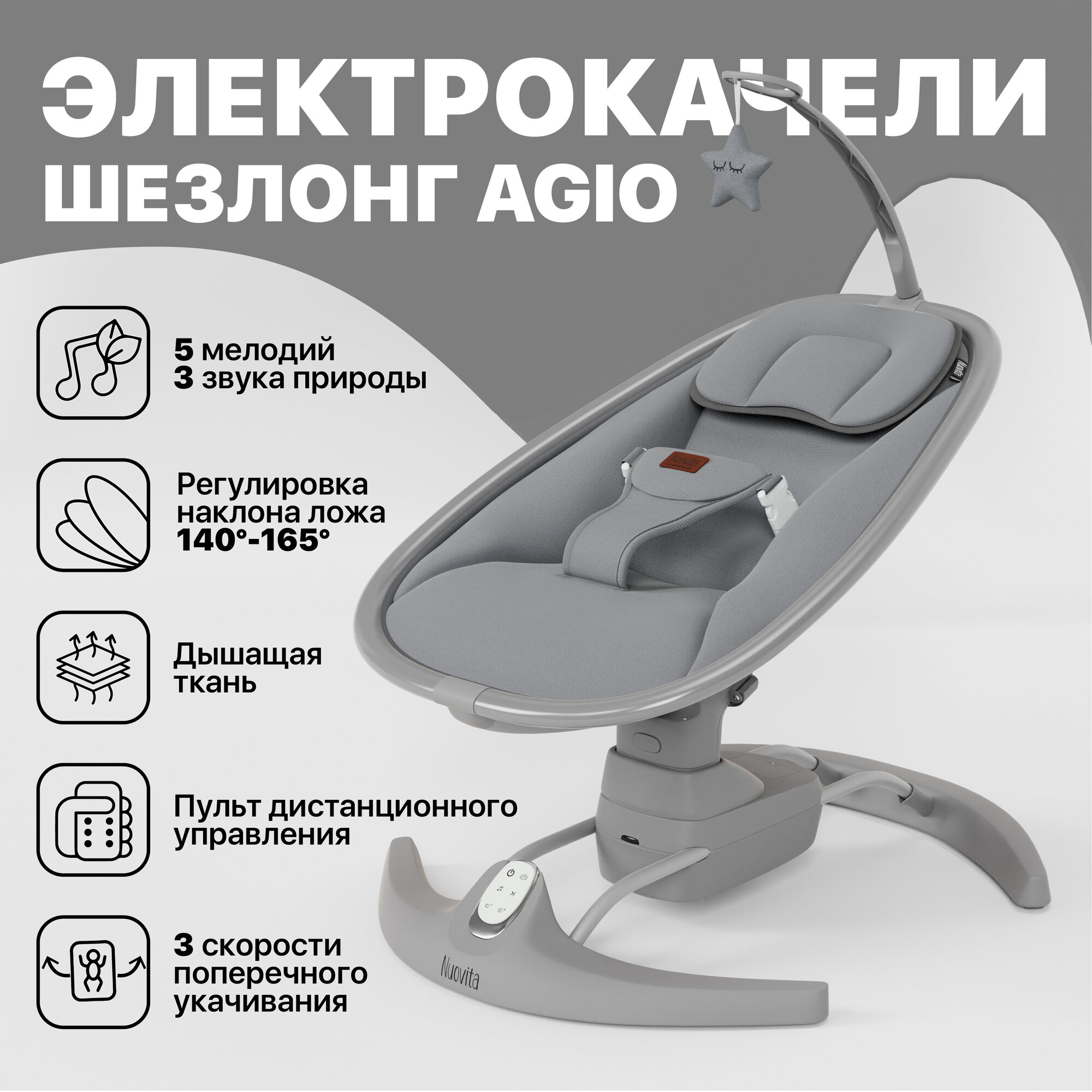 Электрокачели для новорожденных Nuovita Agio (Серый, Серый) информация: