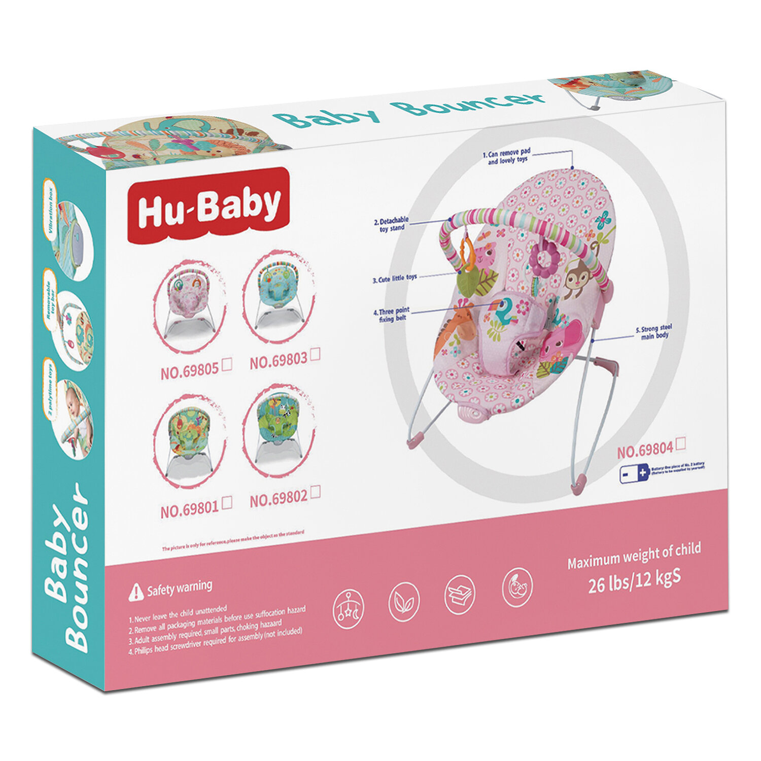 Шезлонг детский 69805 "Цветы" 62х45х45.5 см, до 12 кг, в коробке информация: