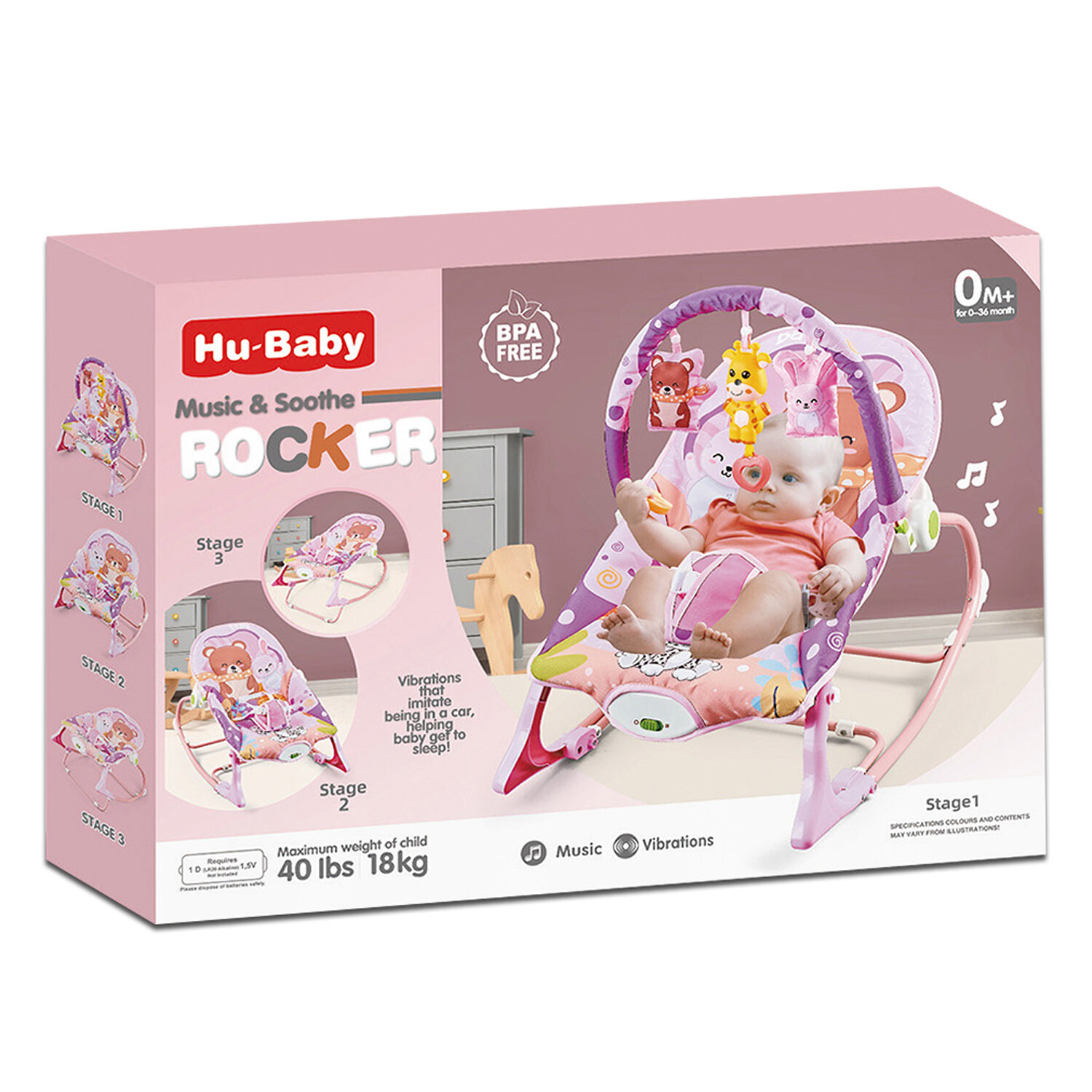 Шезлонг качалка для новорожденного музыкальный 6917 серо-розовый