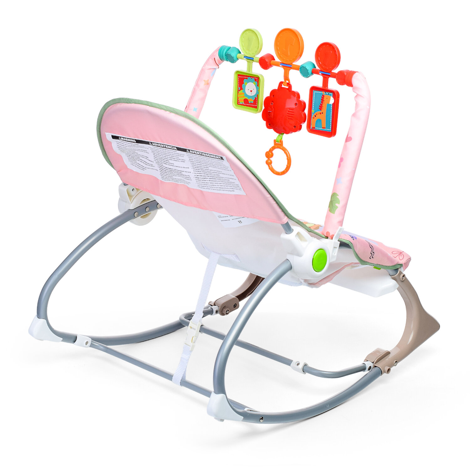 Шезлонг качалка для новорожденного музыкальный 6917 серо-розовый