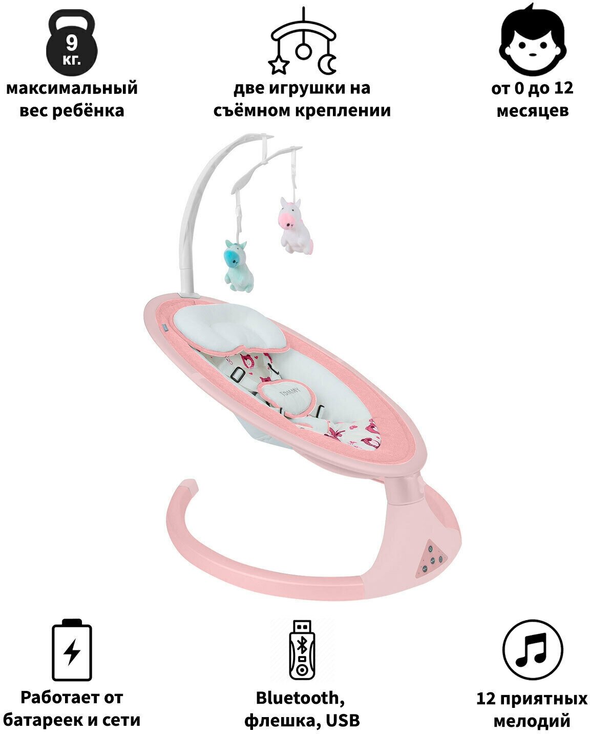 Электрокачели для новорожденных Tommy SW 202 коралловый с пультом и Bluetooth информация: