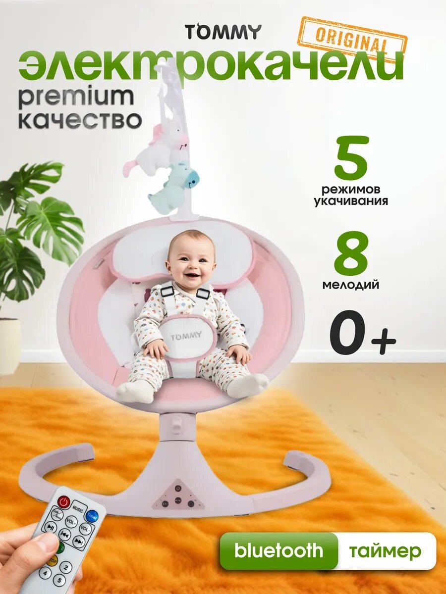 10 цен на Электрокачели для новорожденных Tommy SW 202 коралловый с пультом и Bluetooth