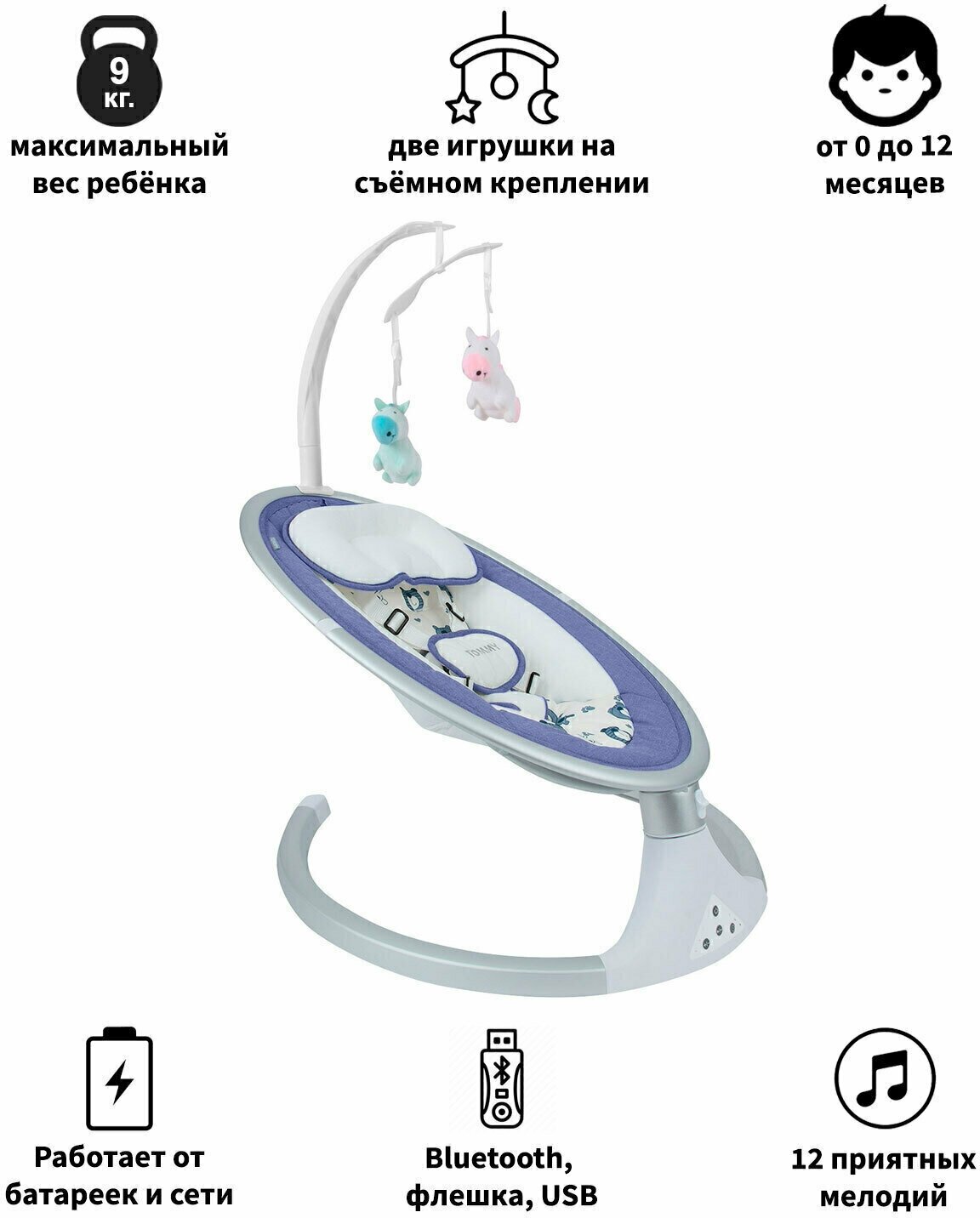 Электрокачели для новорожденных Tommy SW 202 голубой, 5 режимов