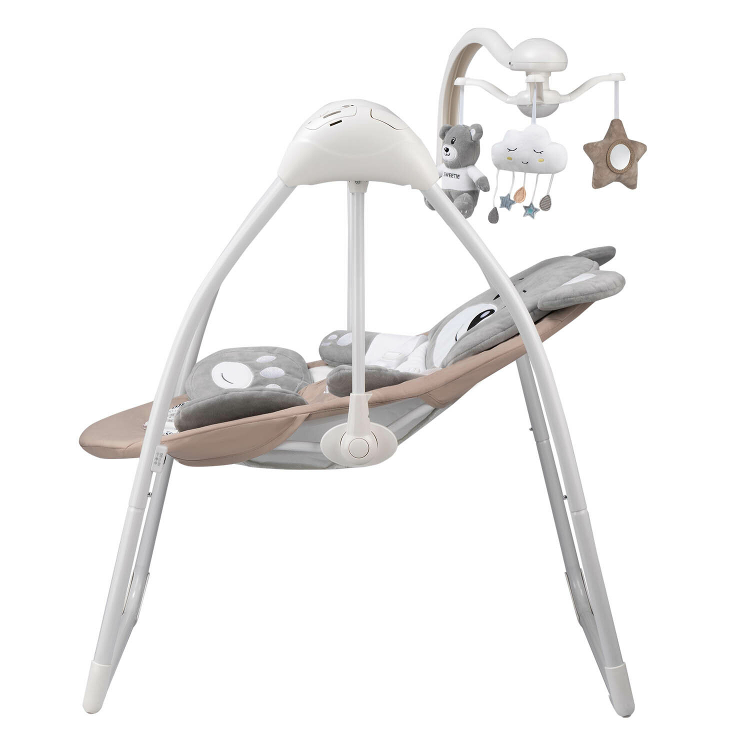 Электронные качели TEDDY (0-9 кг), с адаптером, п/у,12 мел,5 скоростей, москитка(упак.2шт.)(Indigo) (бежевый) информация: