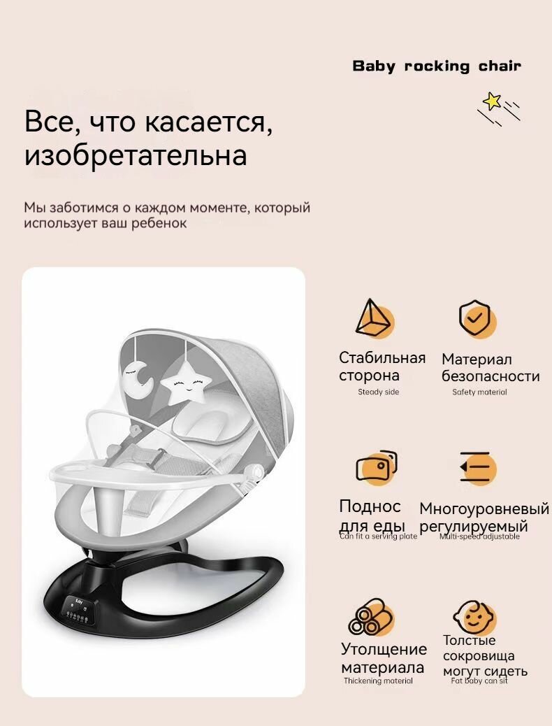 Шезлонг для новорожденных от 0, электронный, музыкальный серый - черный информация: