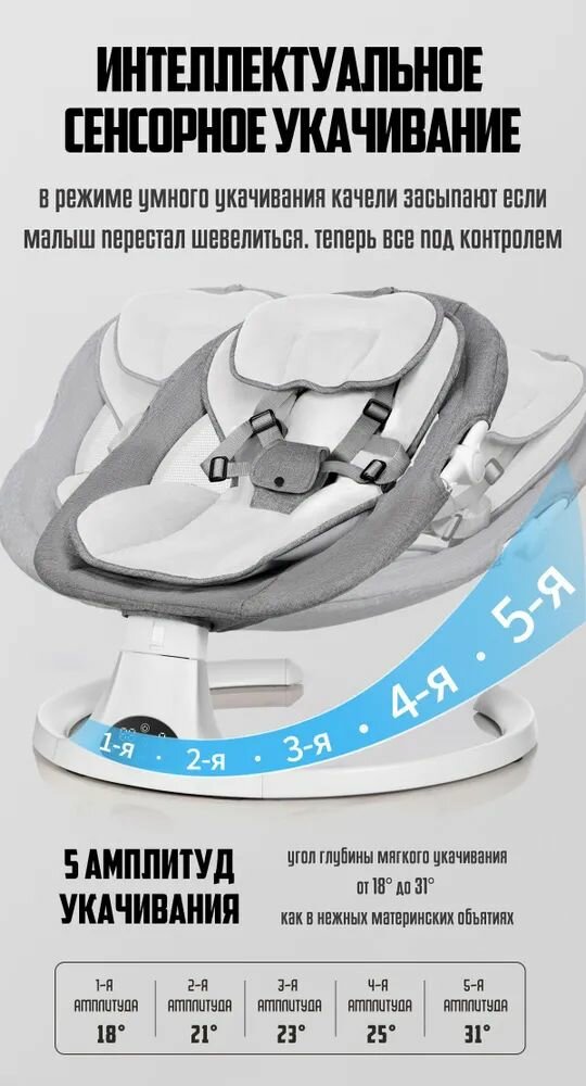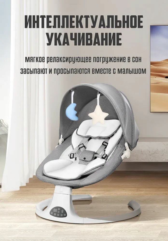 Электрокачели для новорожденного кресло качалка новогодние подарки, для малыша до 12 кг, с пультом управления, серый