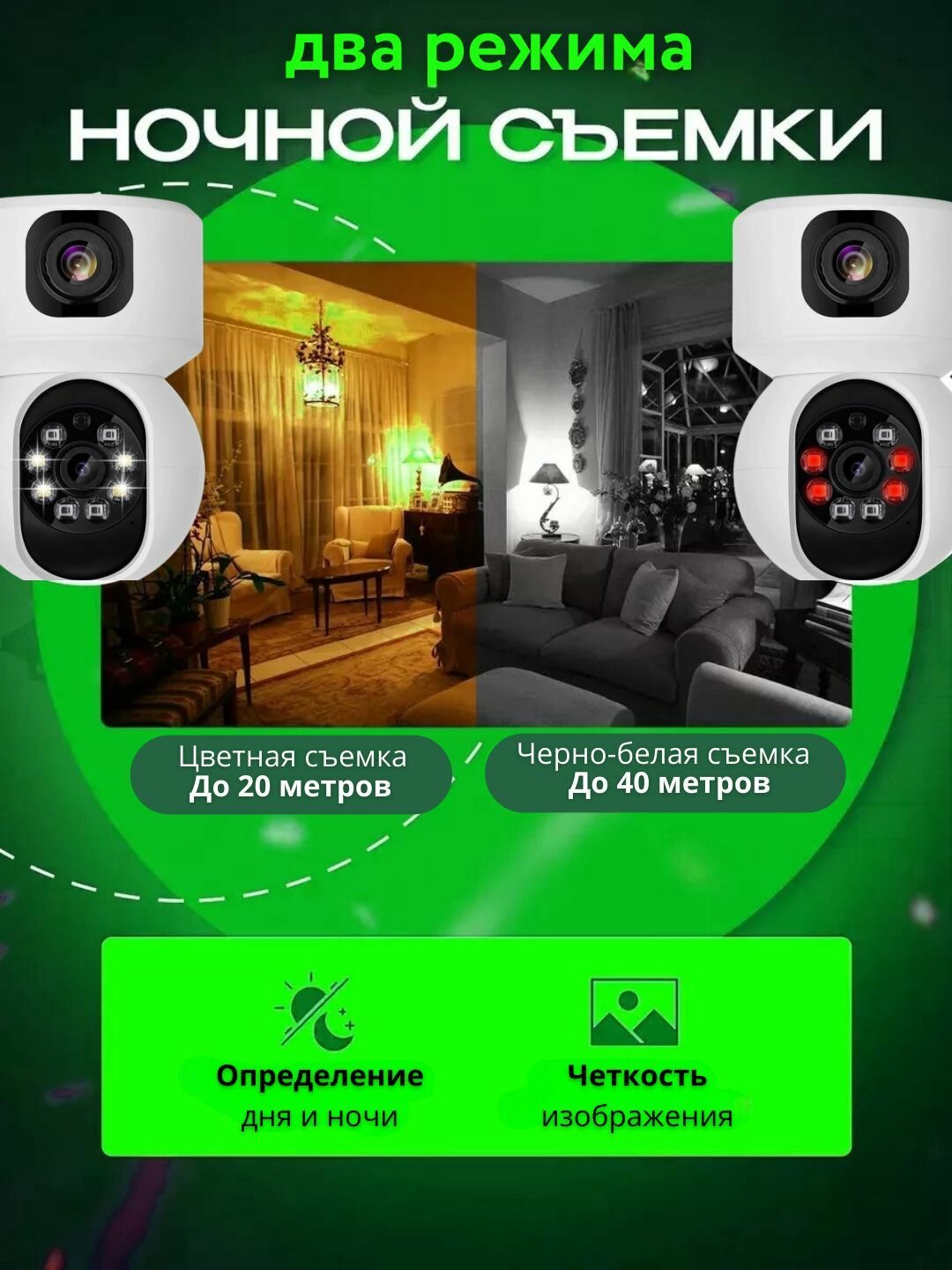 Беспроводная Wi-Fi бинокулярная камера наблюдения дома в помещении и на улице 360 градусов информация:
