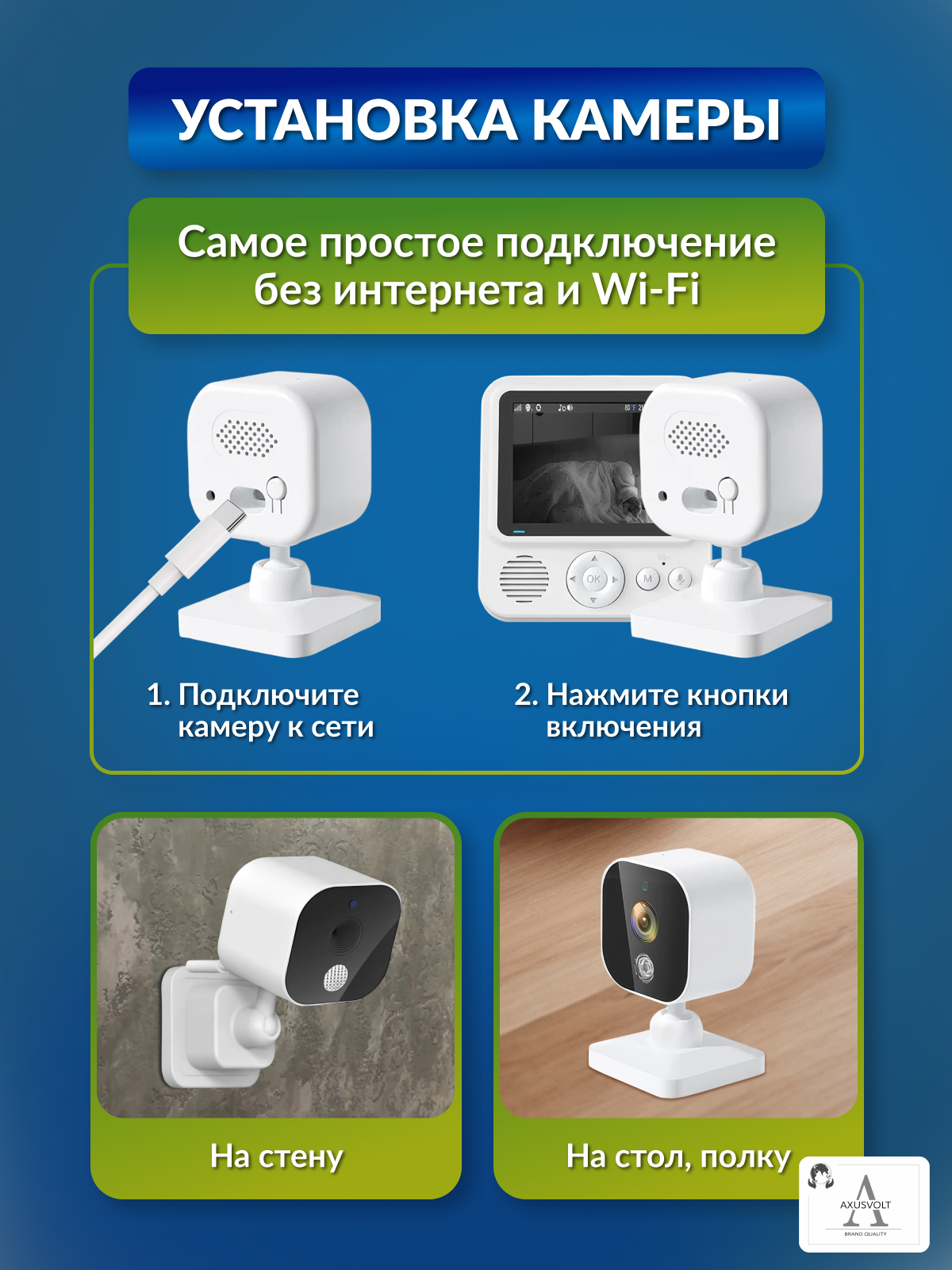 Видеоняня AXUSVOLT, ЖК-дисплей 2048 x 1536, двусторонняя голосовая связь информация: