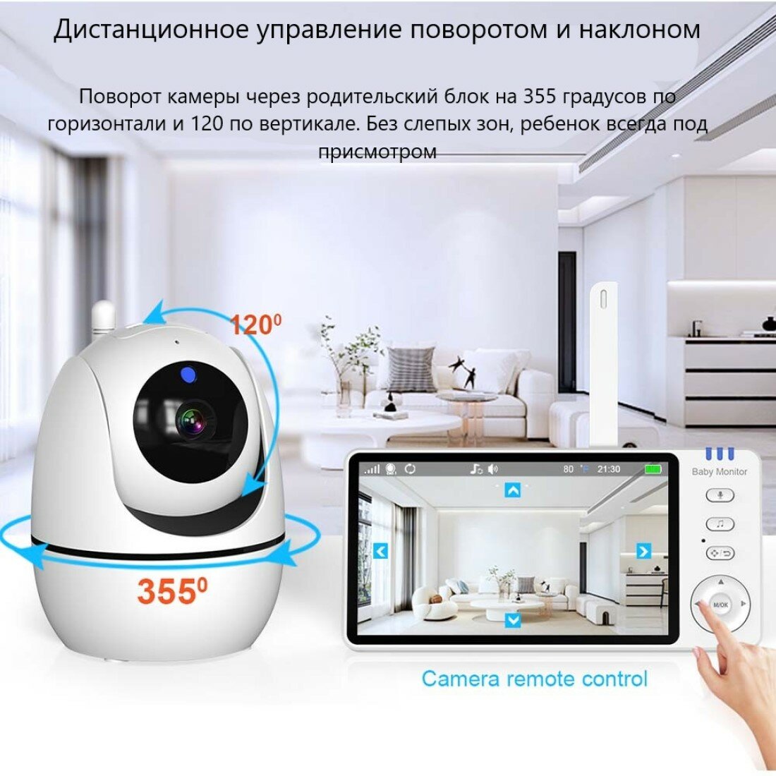 Видеоняня, baby monitor видеоняня, видеоняня с камерой, двухсторонняя связь, микрофон, ночной режим, HD качество, 5 дюймов дисплей, белый информация:
