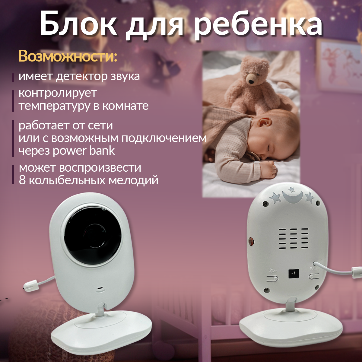 Видеоняня с монитором беспроводная цифровая, без Wi-fi, радионяня информация:
