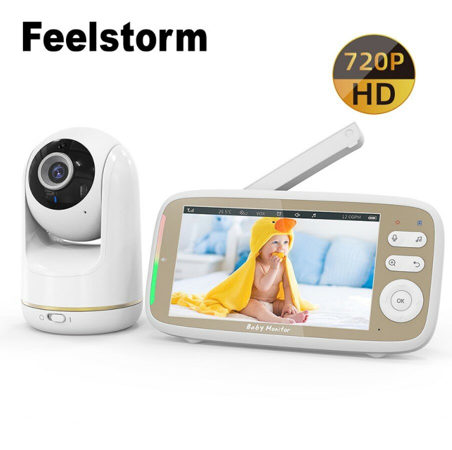 Видеоняня с 5-дюймовым ЖК-экраном, удаленной камерой, двусторонней аудиосвязью, контролем температуры и 3-кратным зумом - Белый PC+ABS информация: