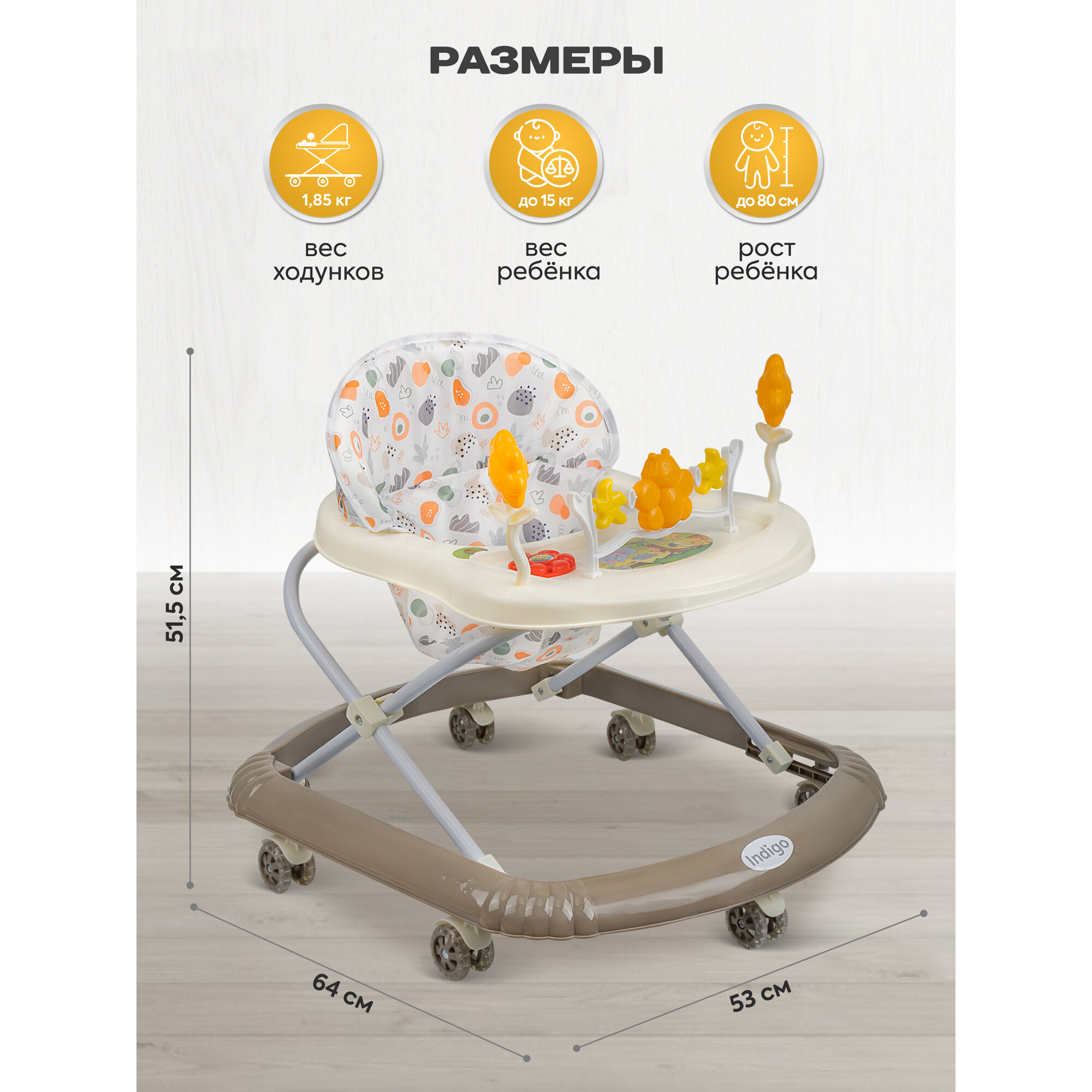 Характиристики этого товара не найдены!Отзывы на Ходунки детские музыкальные Indigo Fly C с игровой панелью, 7 силиконовых колес, бежевый