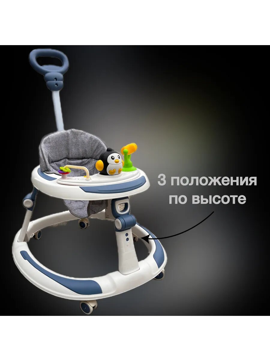 Ходунки для малышей, с родительской ручкой, от 7 месяцев, нагрузка до 15кг информация: