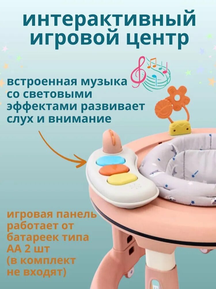 Ходунки детские, с музыкальной панелью, ABS пластик, розовые информация: