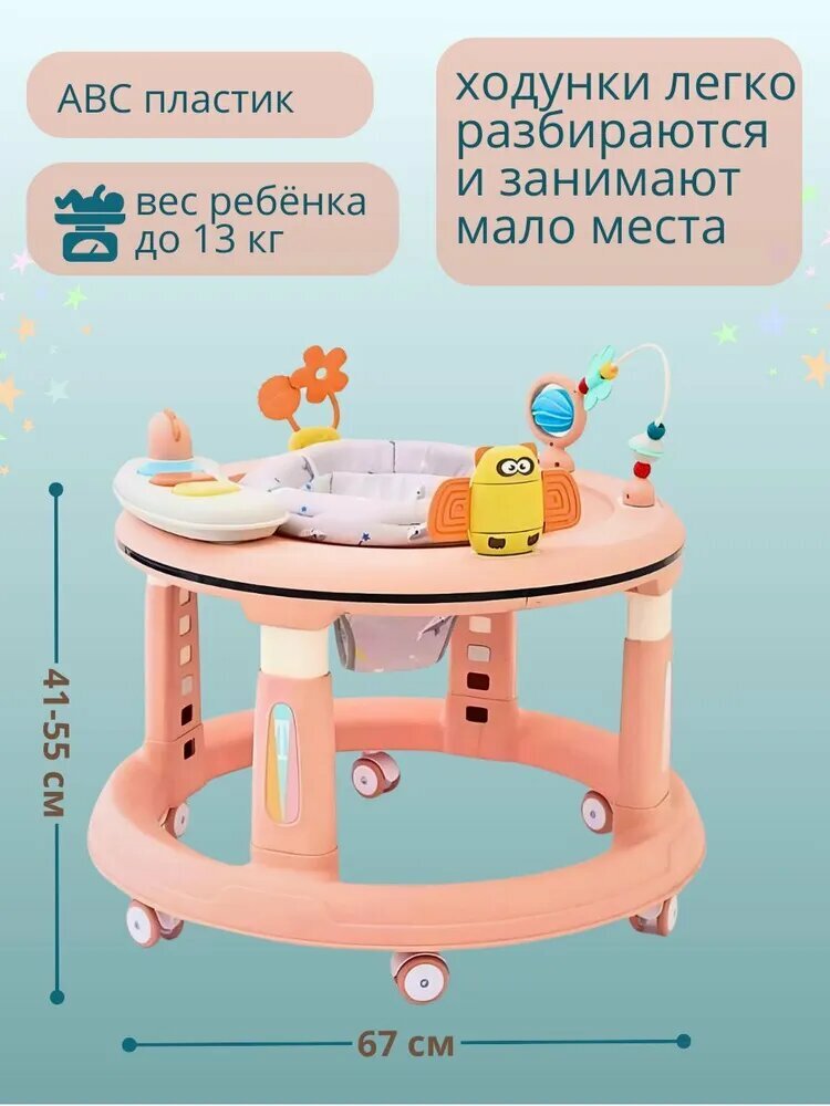 10 цен на Ходунки детские, с музыкальной панелью, ABS пластик, розовые