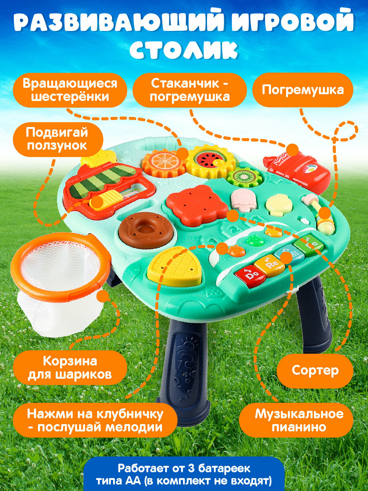 10 цен на Развивающий центр 3в1, музыкальная панель, ходунки, игровой столик, свет, звук, зеленый, JB0334328