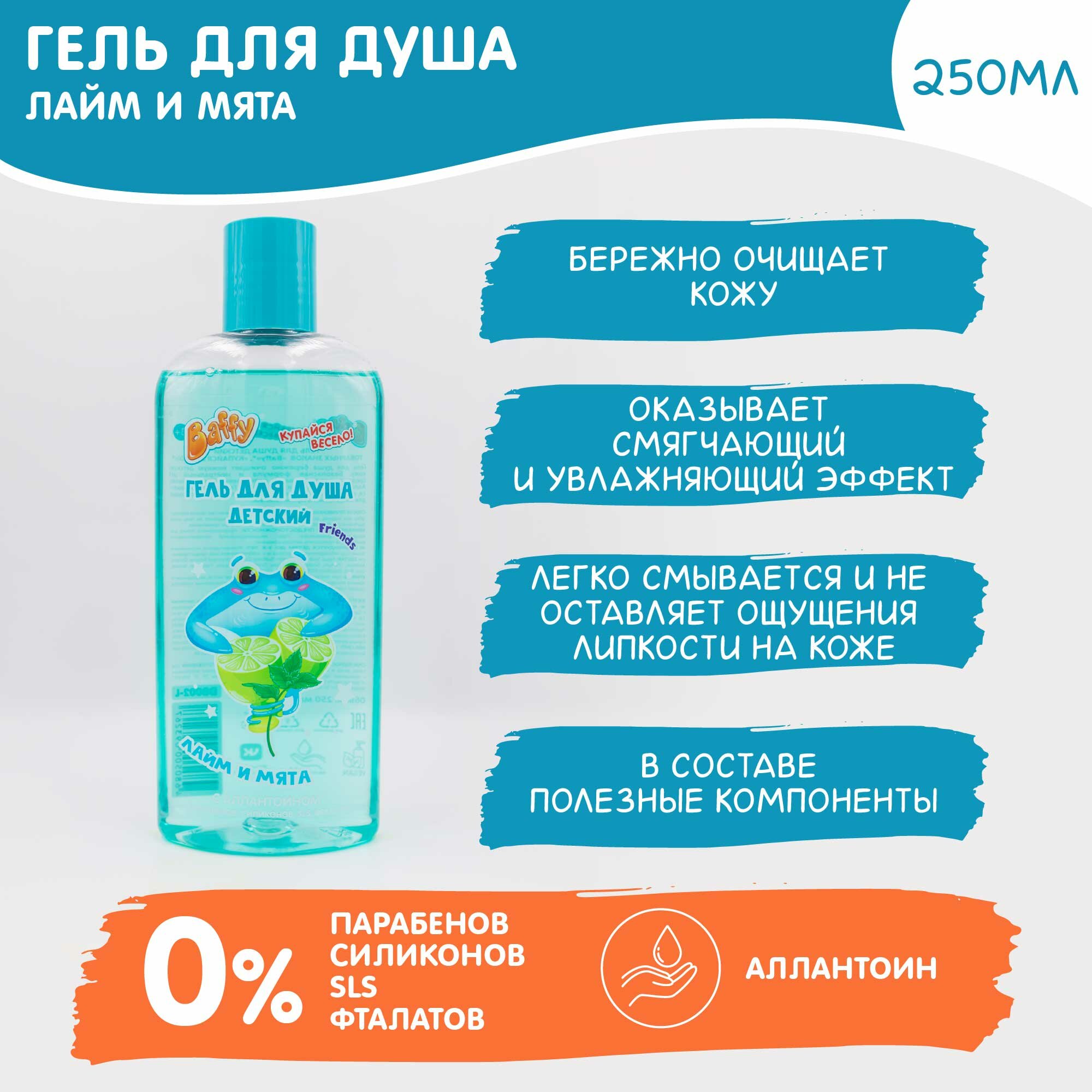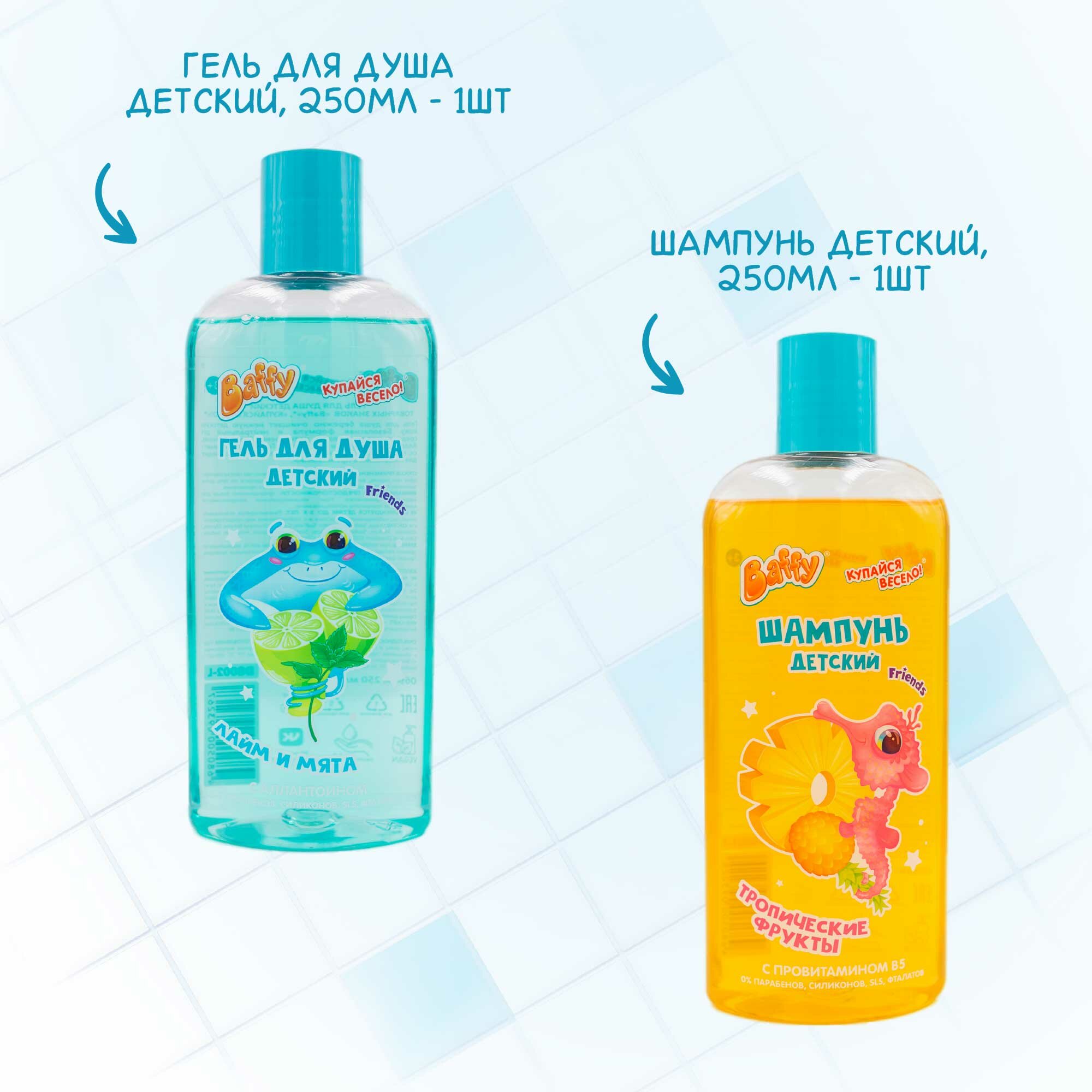 Набор для купания Baffy детский/ гель для душа и шампунь(тропик +лайм/мята 250мл+250мл), 2шт. информация:
