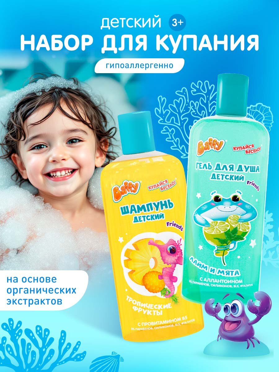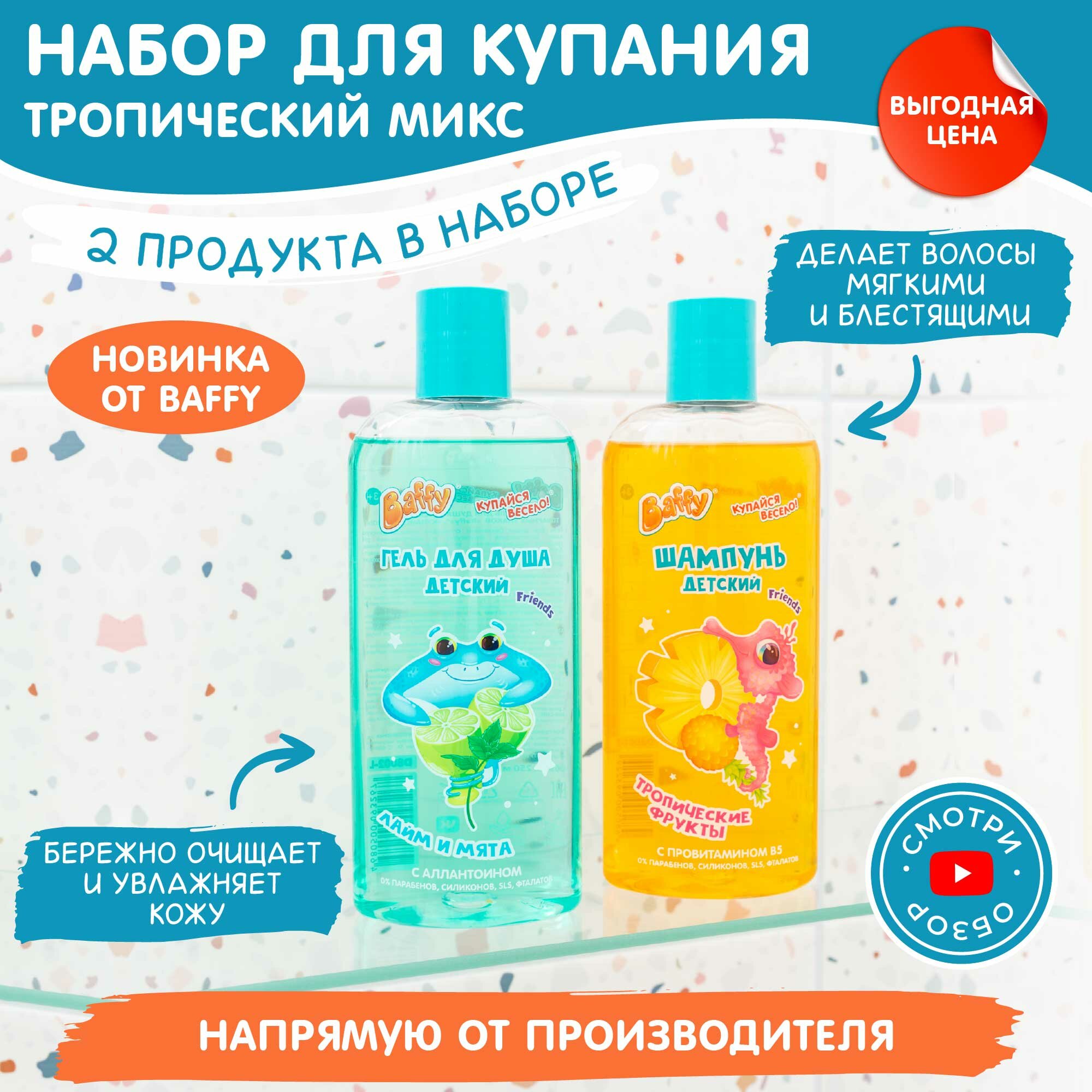10 цен на Набор для купания Baffy детский/ гель для душа и шампунь(тропик +лайм/мята 250мл+250мл), 2шт.