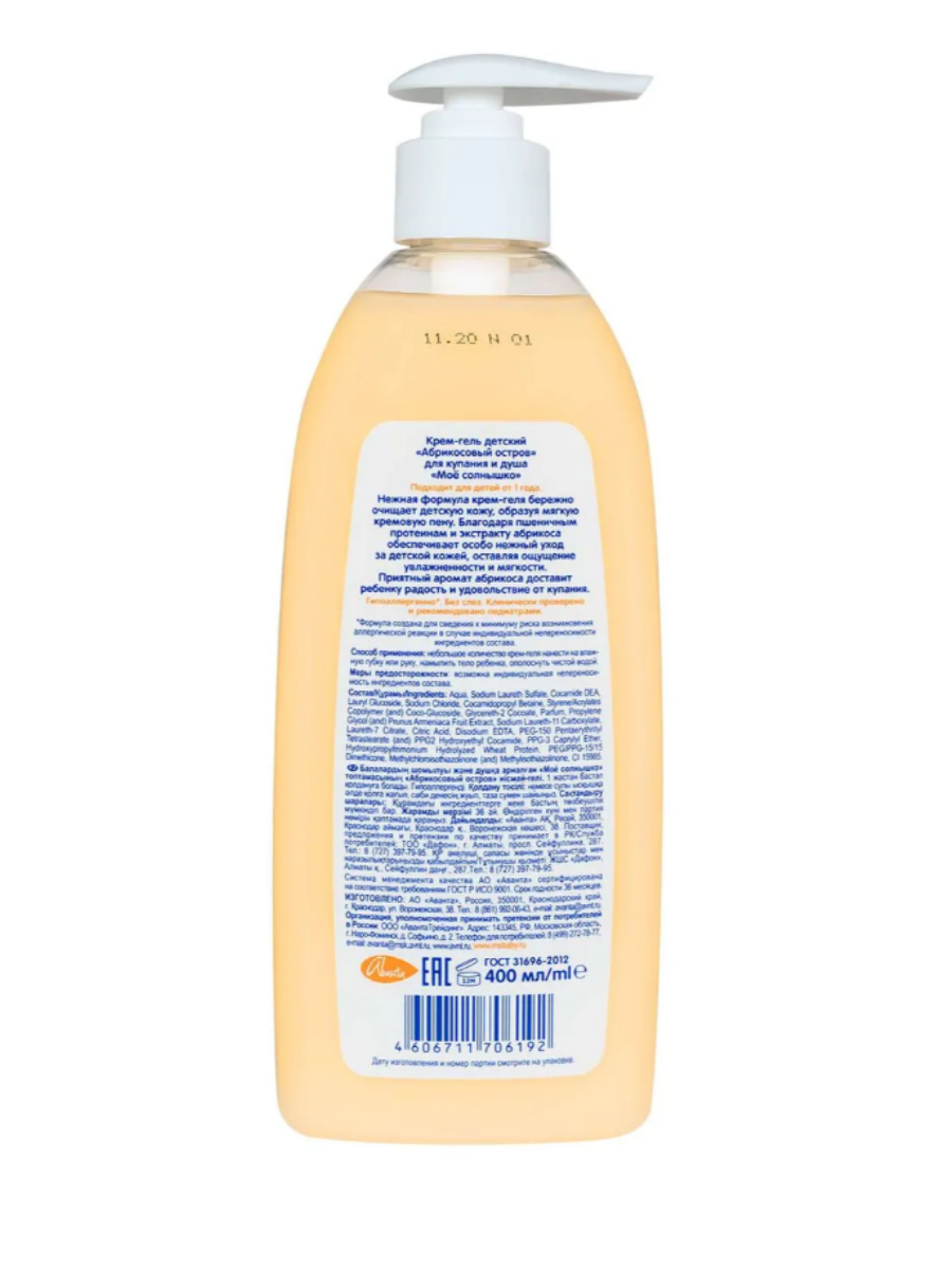 Крем-гель для душа Моё солнышко Абрикосовый остров 400мл 2 штуки информация: