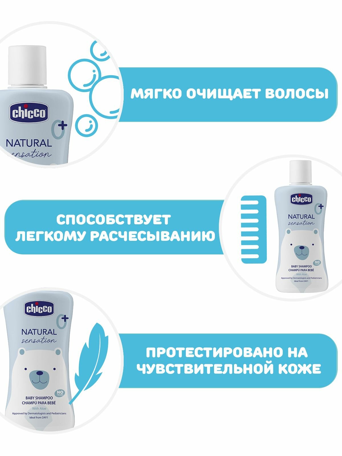 Шампунь детский для волос Chicco Natural Sensation для новорожденных без слез 200 мл 0+ информация: