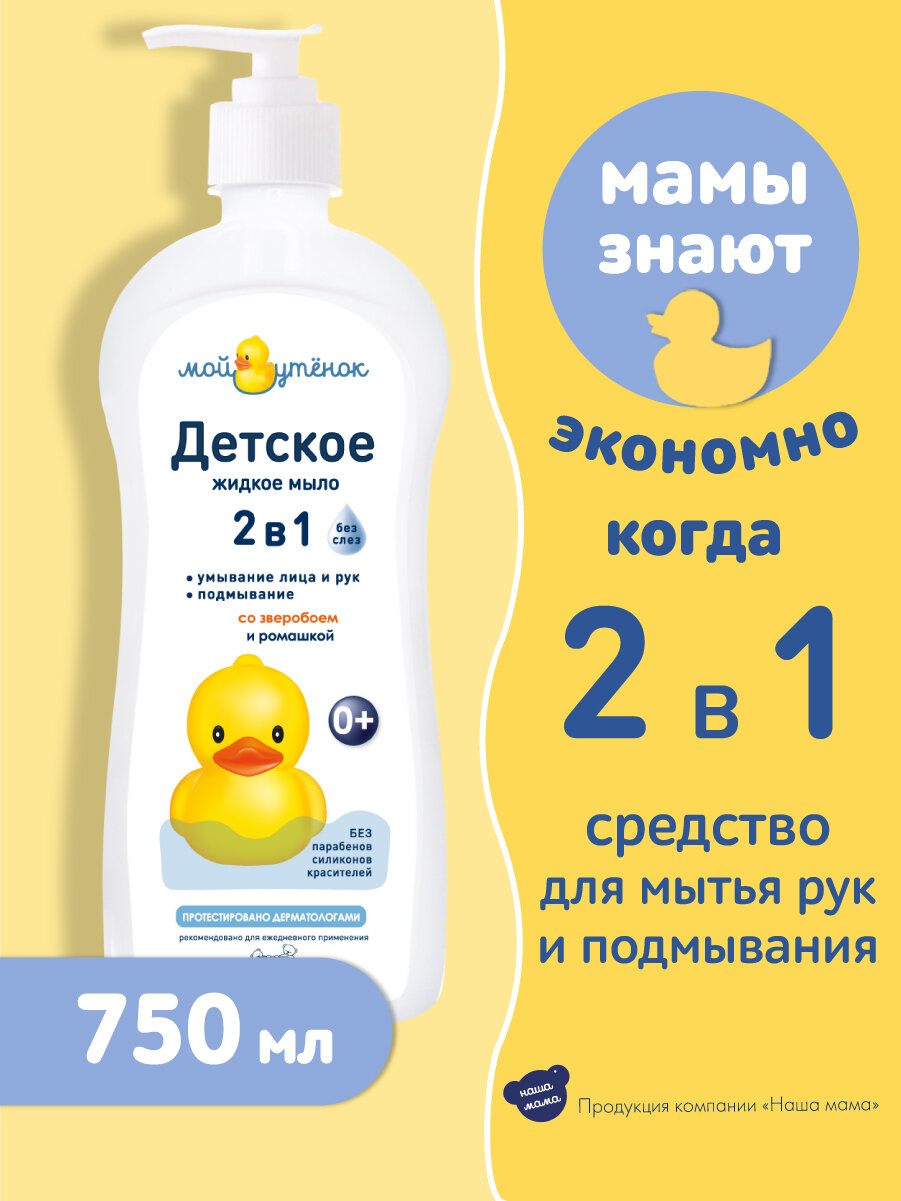 Мой Утенок Детское жидкое мыло 2 в 1 с рождения, для умывания и подмывания малышей, гипоаллергенно, 0+, 750 мл информация: