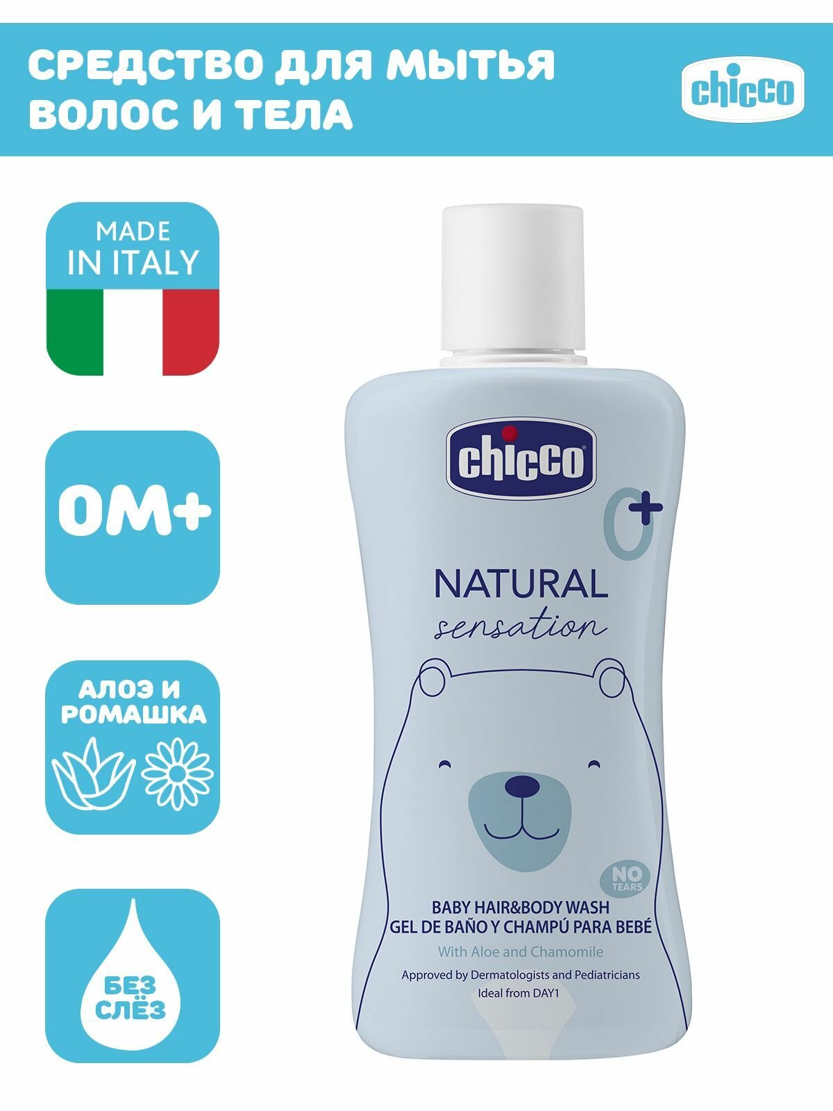 Средство для мытья волос и тела без слез Chicco NATURAL SENSATION, 200 мл информация: