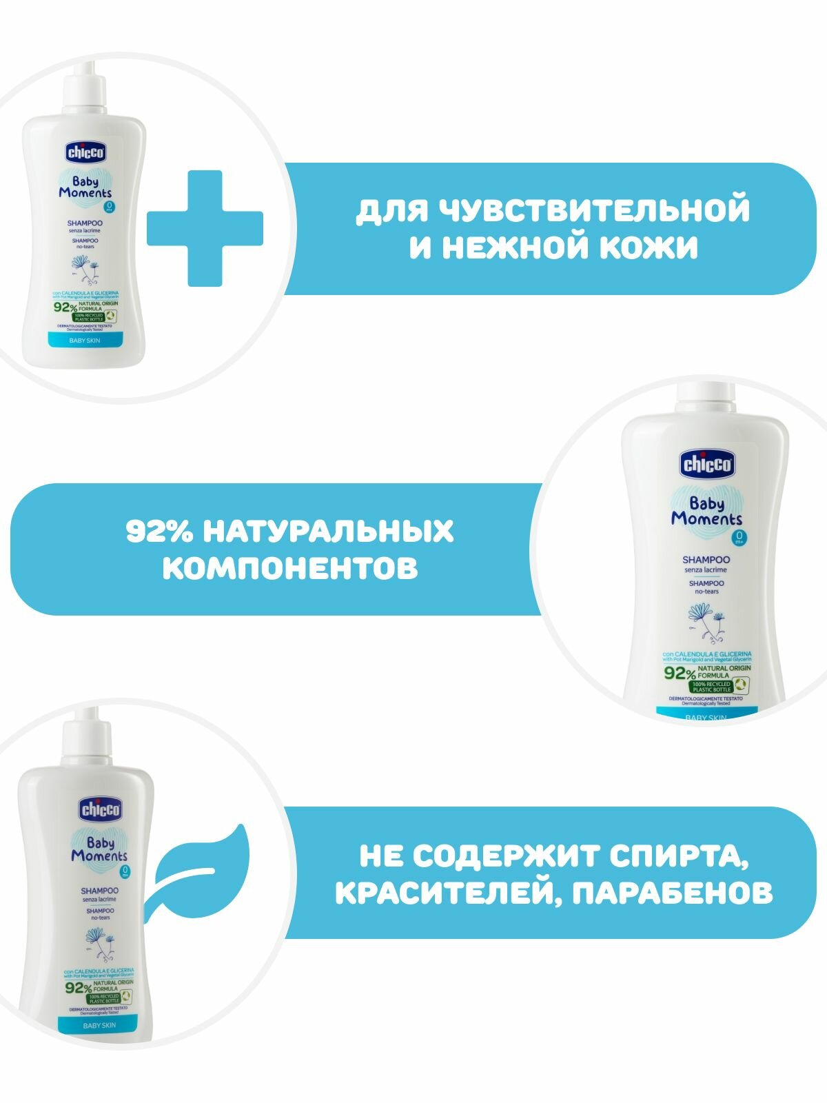 Шампунь детский для волос Chicco Baby Moments для новорожденных с календулой без слез 500 мл 0+ информация:
