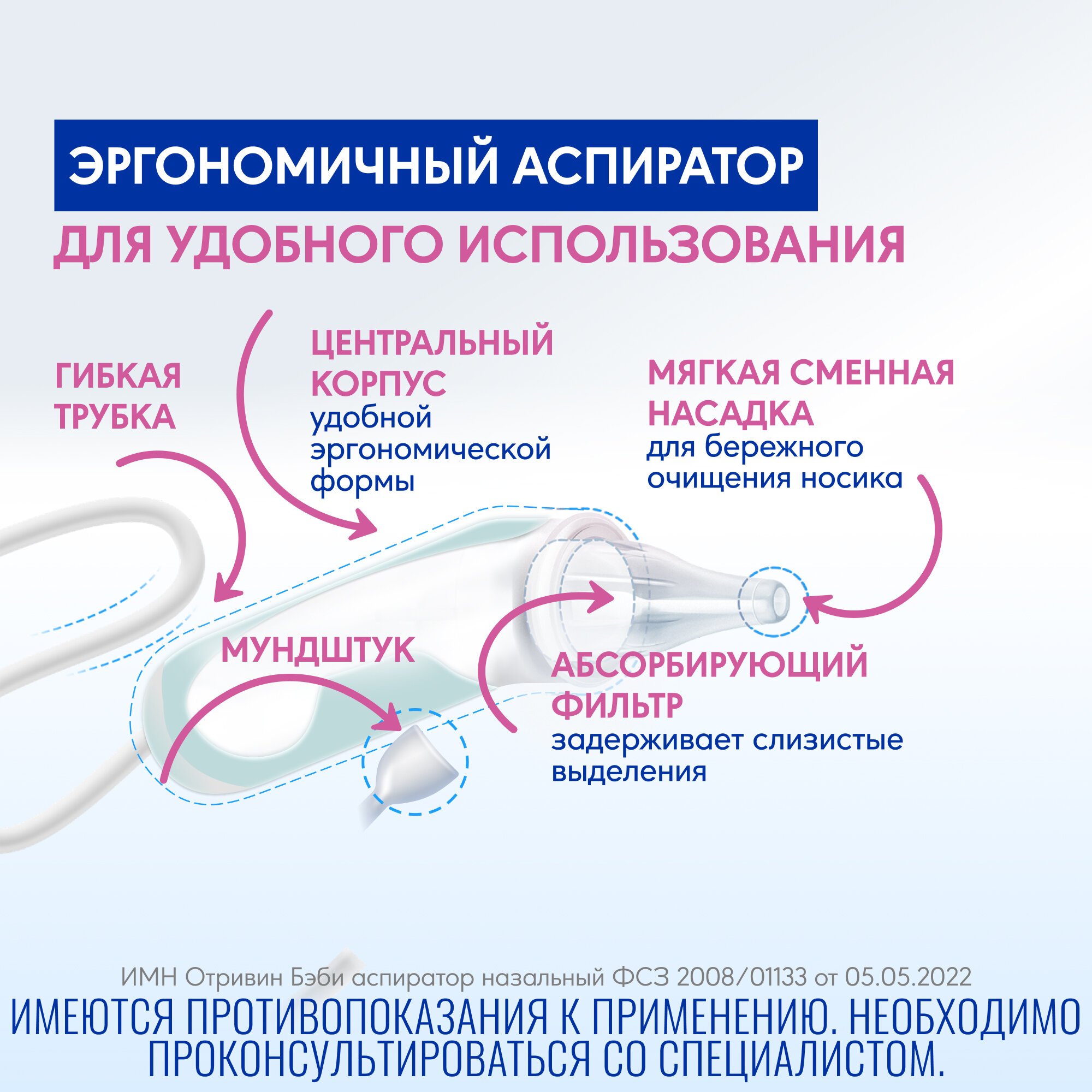 Отривин Бэби Комфорт аспиратор назальный детский со сменными одноразовыми насадками, 1шт + 2 насадки информация:
