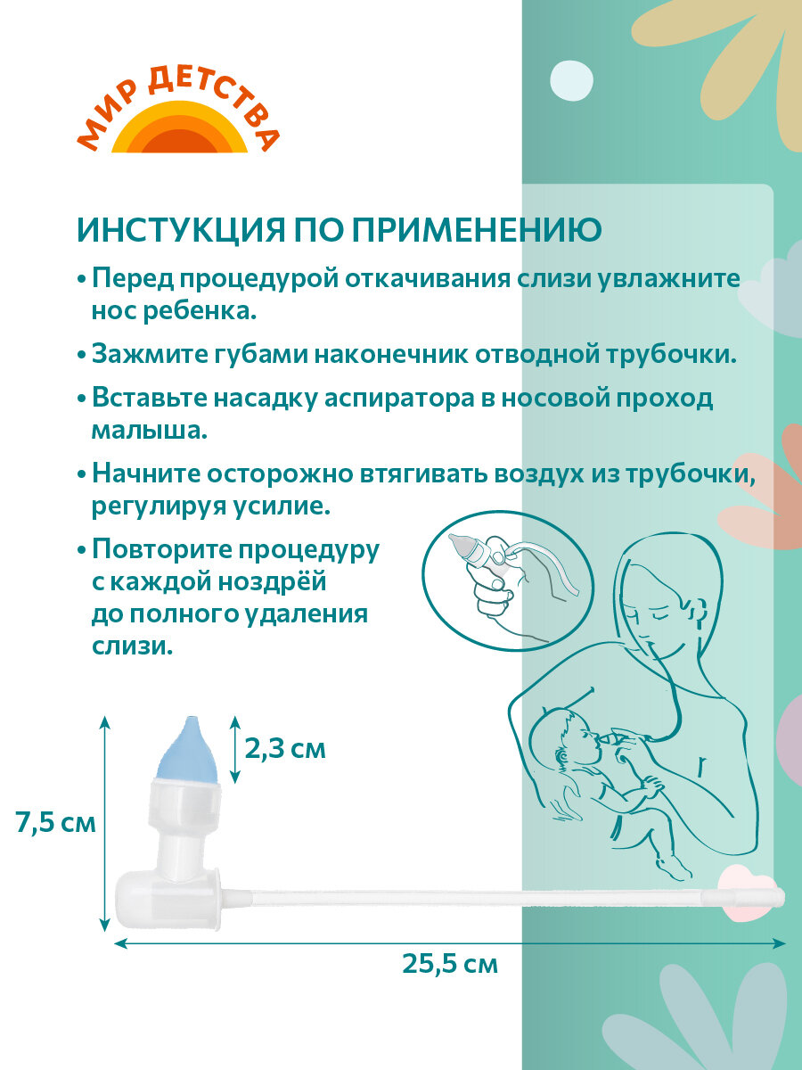 Аспиратор назальный соплеотсос с трубочкой МирДетства для новорожденных и детей, голубой, 0+ мес. информация: