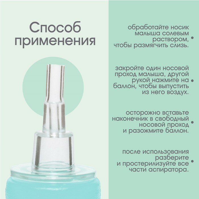 10 цен на Аспиратор назальный «Груша» со сменным носиком, цвет бирюзовый, 4770817