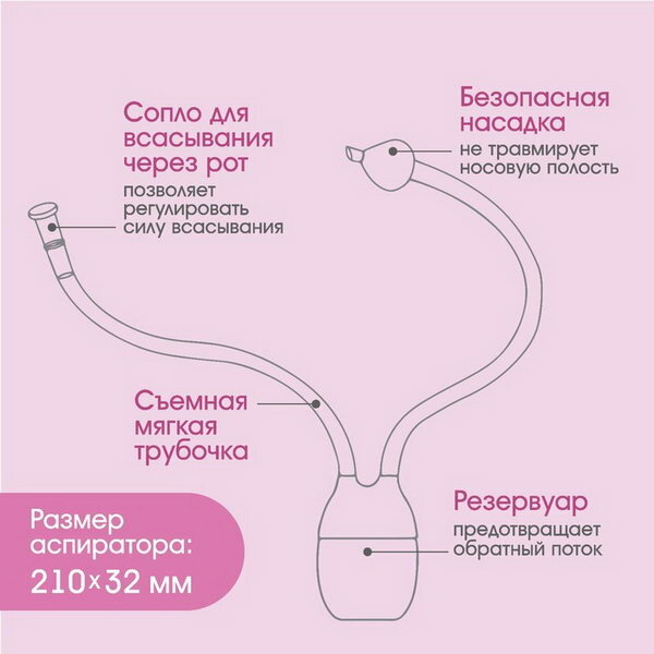 Аспиратор назальный с отводной трубкой "Совушка", цвет розовый информация: