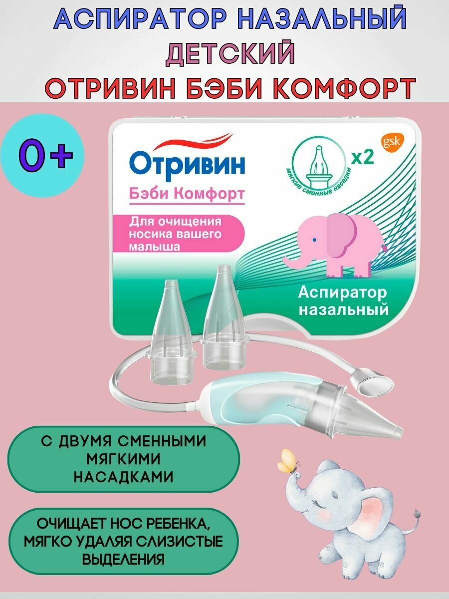 Отзывы на Отривин бэби комфорт Аспиратор назальный детский с 2 сменными насадками