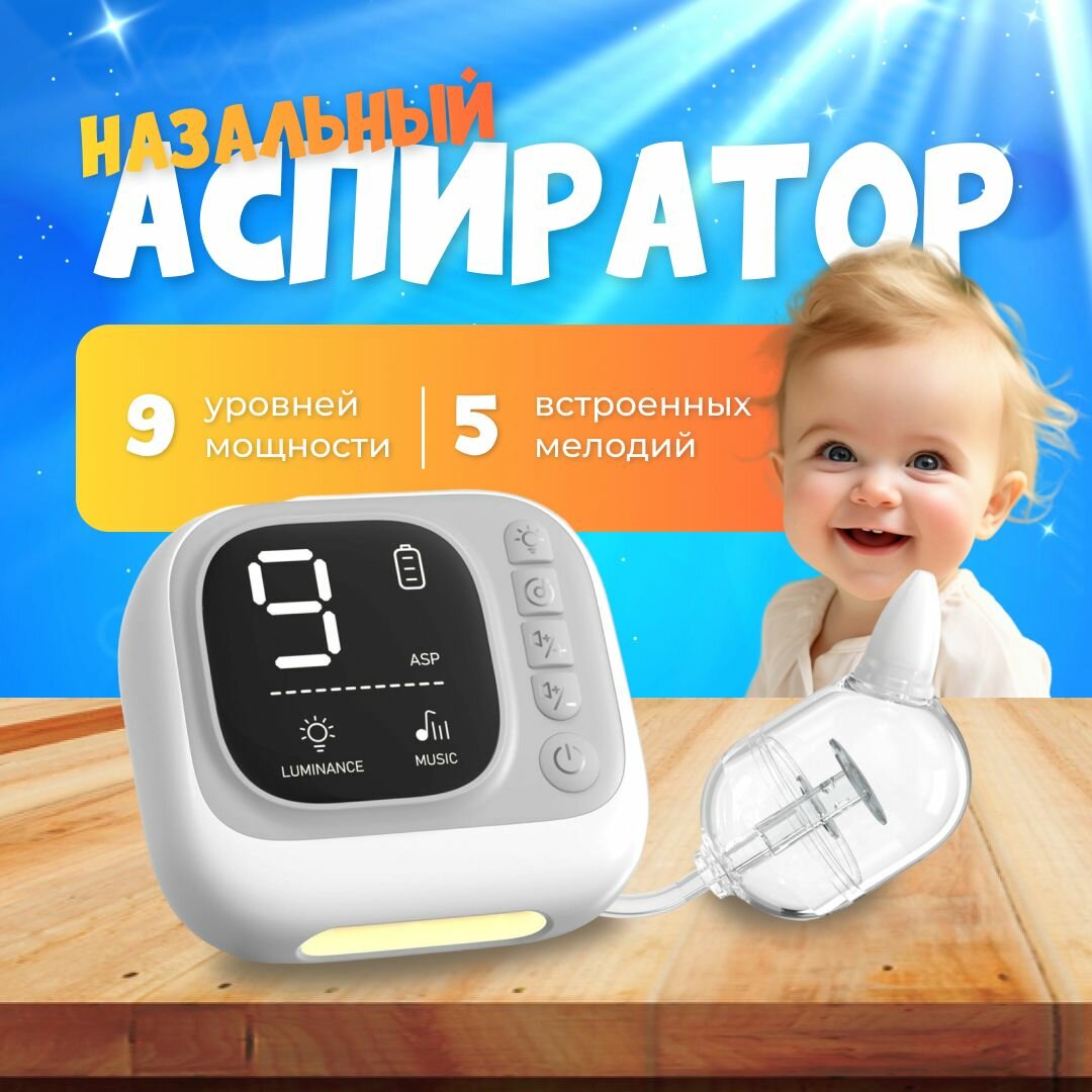 Аспиратор назальный электрический детский соплеотсос с музыкой и подсветкой для новорожденных