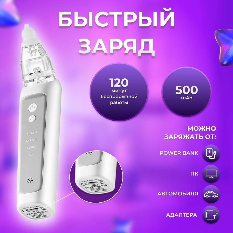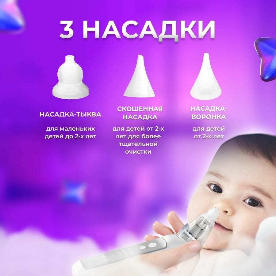 Аспиратор назальный детский, соплеотсос электронный для детей, для новорождённых, с тремя насадками, электрический информация: