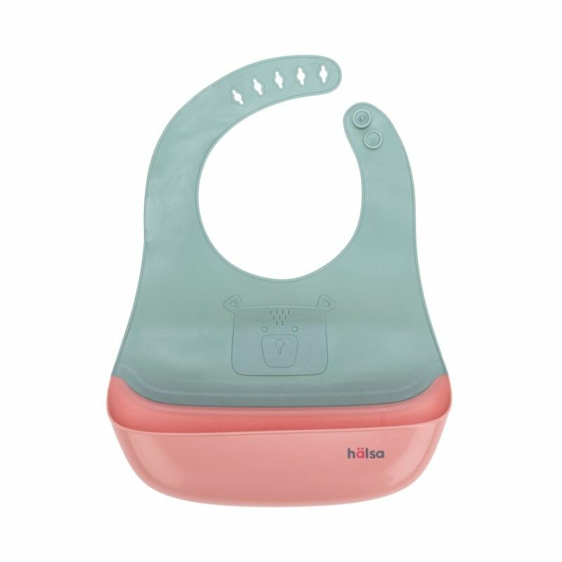 10 цен на Фартук нагрудный для кормления с жестким карманом, зеленый с розовым HALSA