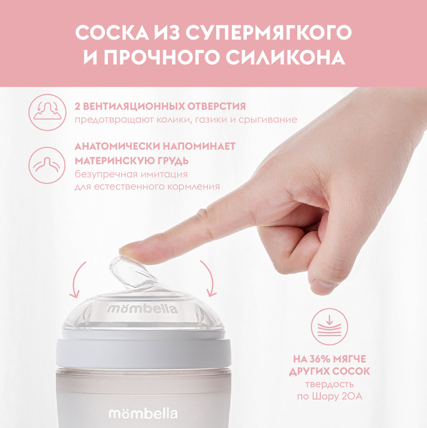 Отзывы на Антиколиковая бутылочка для кормления новорождённых Mombella, широкая, 120 мл, силиконовая, 0+ мес.