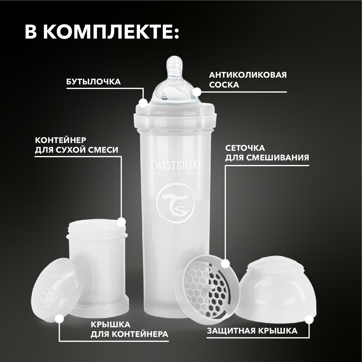 Детская антиколиковая бутылочка для кормления Twistshake, 330 мл, от 4 мес. Белый Бриллиант информация: